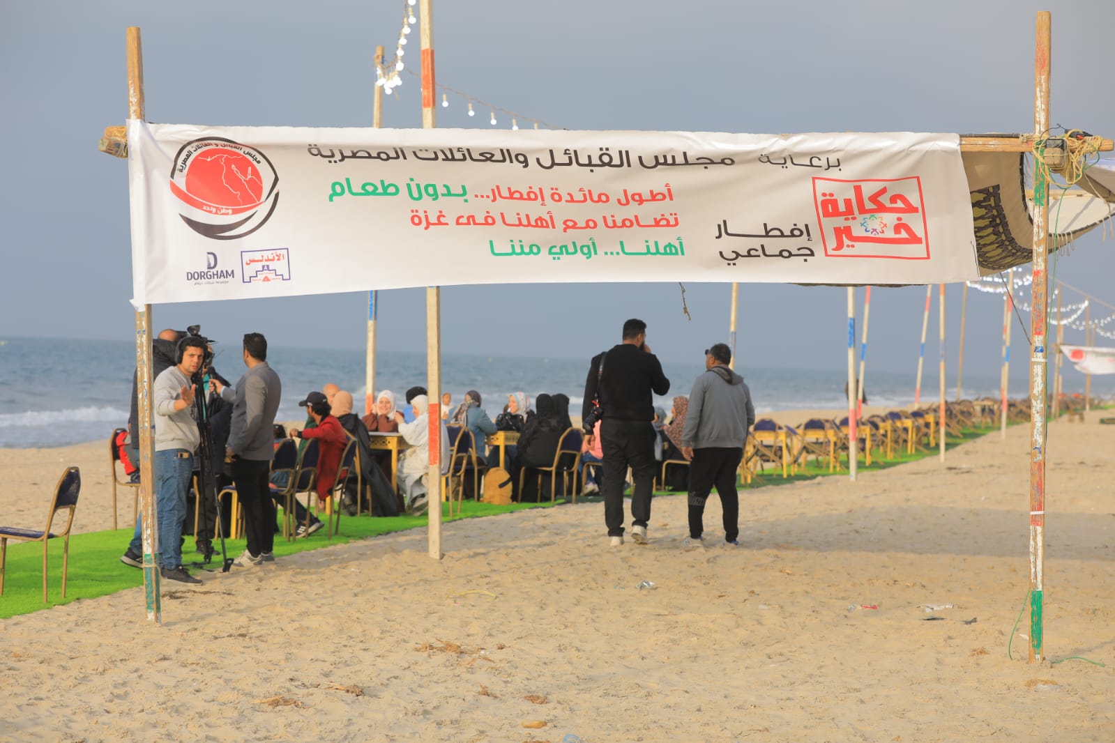 قال أحد منظمي أطول مائدة طعام على ساحل مدينة العريش، «بدون إفطار»، تضامنًا مع الشعب الفلسطيني في قطاع غزة، إن مجلس القبائل والعائلات المصرية قرر تنظيم المائدة بحوالي 4 كيلومتر كرسالة معبرة عن التضامن الأسري والحدودي مع الشعب الفلسطيني، موضحاً أنها تستهدف 10 آلاف صائم بدون احتفالات.