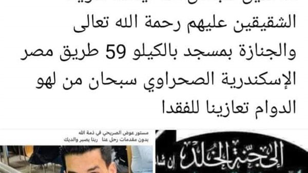 شهدت محافظة الاسكندرية مأساة إنسانية هزت أهالي منطقة الكيلو 59 بغرب المدينة، فى مشهد ماساوى شيع العشرات من أهالي غرب الإسكندرية، من أحد مساجد الكيلو 59 بطريق مصر الإسكندرية الصحراوي، جنازة شاب وشقيقته التي وافتها المنية بعده بساعتين حزنا على فراقه.