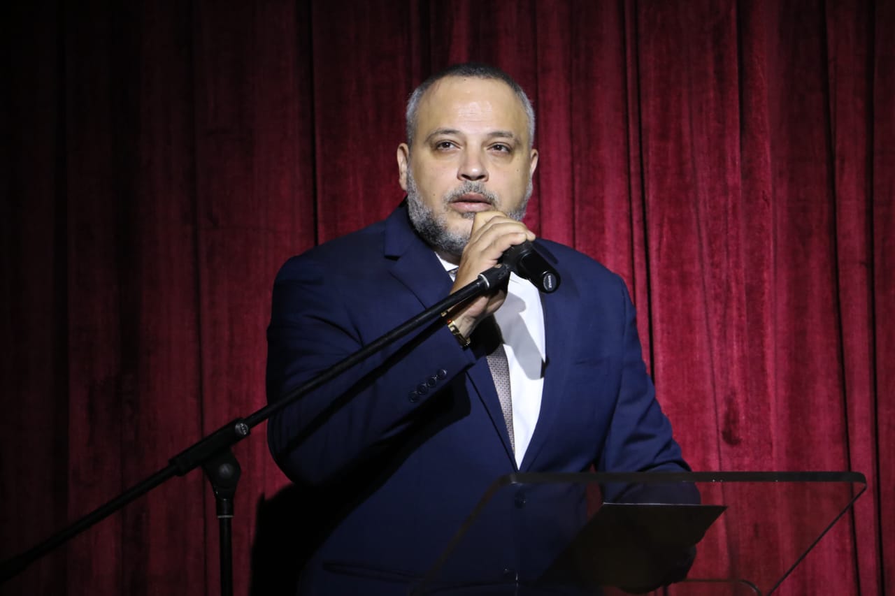 بدأت الإحتفالية بالسلام الوطني لجمهورية مصر العربية ثم صعد الفنان تامر عبدالمنعم رئيس الإدارة المركزية للشئون الفنية إلى خشبة المسرح لإلقاء كلمته.