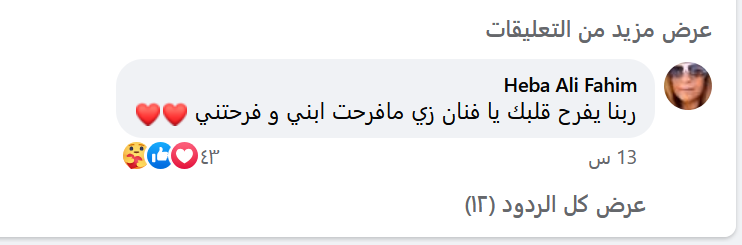 وتوالت التعليقات على منشور ولعل أبرزها هو تعليق والدة المحارب داوود محمد عادل حيث علقت قائلة:" ربنا يفرح قلبك يا فنان زي مافرحت ابني و فرحتني ❤".