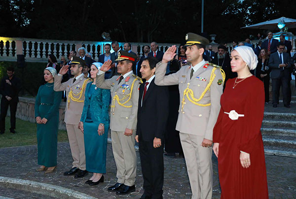 وشارك فى الإحتفال عدد كبير من قيادات وزارة الدفاع والخارجية الإيطالية فضلاً عن السفراء العرب والأجانب وبعض السادة من نواب البرلمان والمؤسسات الإيطالية الحكومية والمدنية وبمشاركة الرموز الوطنية من الأزهر الشريف والطوائف المسيحية بإيطاليا والملحقين العسكريين المعتمدين لدى دولة إيطاليا