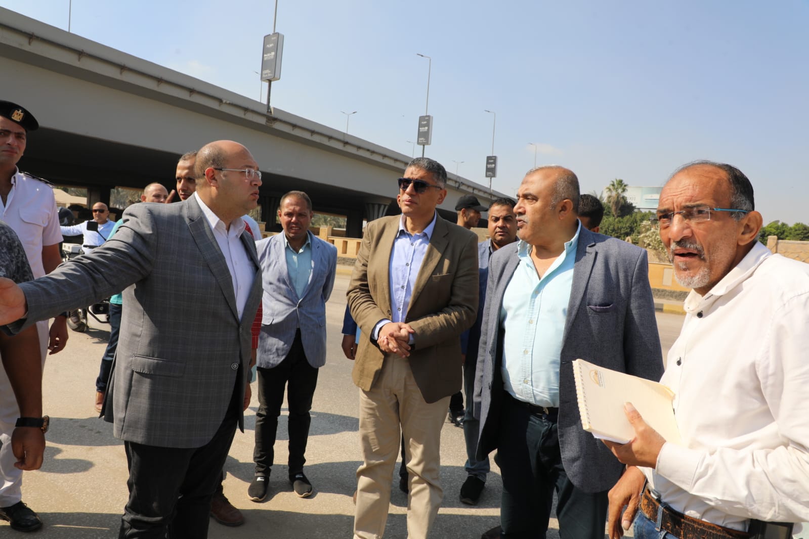 رافق المحافظ خلال الجولة السادة إبراهيم الشهابى نائب المحافظ وأيمن عتريس رئيس جهاز التفتيش الميدانية ونجوى السعيد مدير مديرية الطرق وخالد عصر رئيس مركز ومدينة كرداسة و طه عبدالصادق رئيس حى الهرم و فرج عبد العاطى رئيس مركز ومدينة أوسيم وشفيق جلال رئيس الهيئة العامة للنظافة والتجميل و حازم لاشين رئيس جهاز السرفيس وأحمد هجرس مسئول شركة جنوب القاهرة لتوزيع الكهرباء .