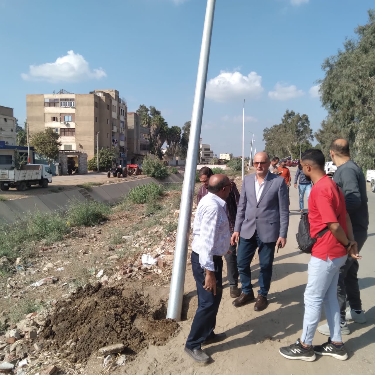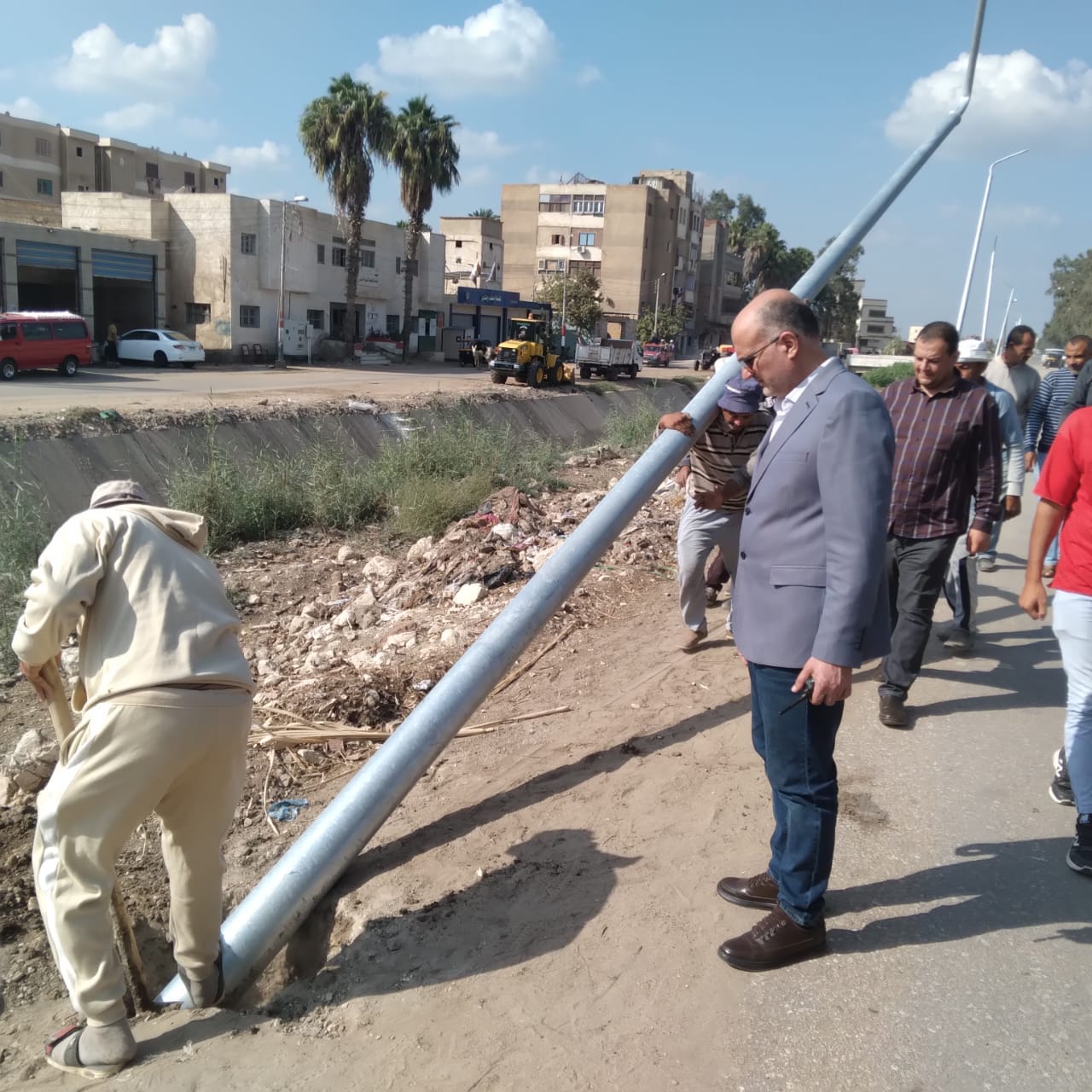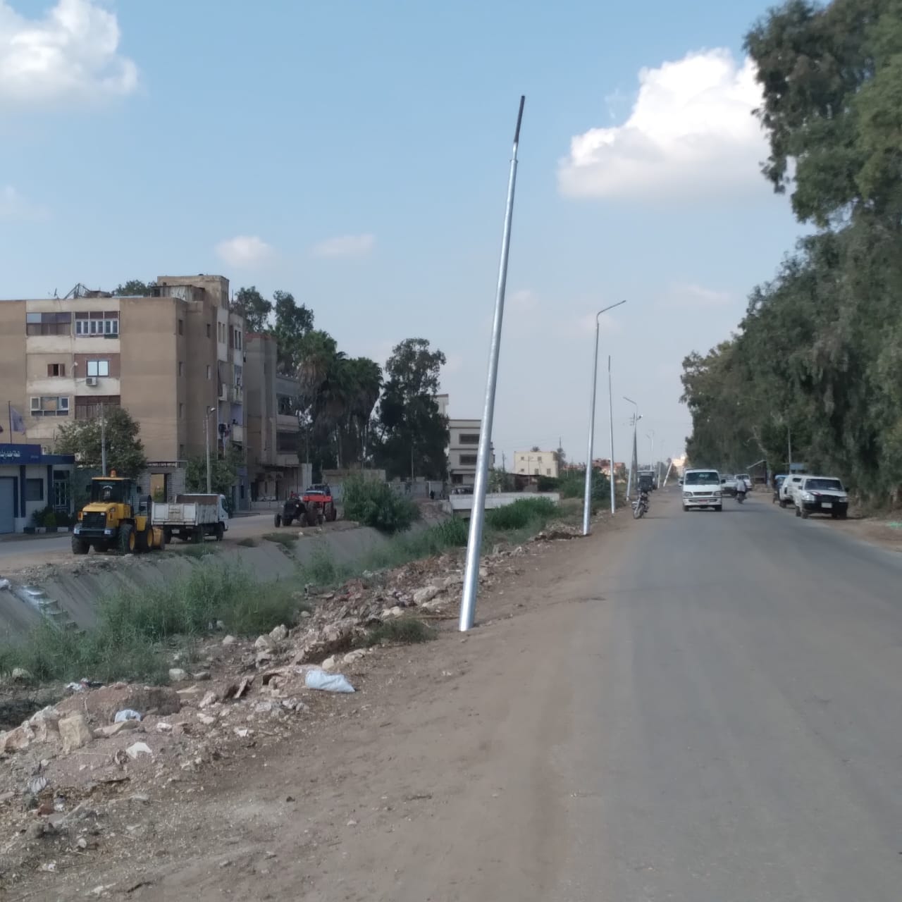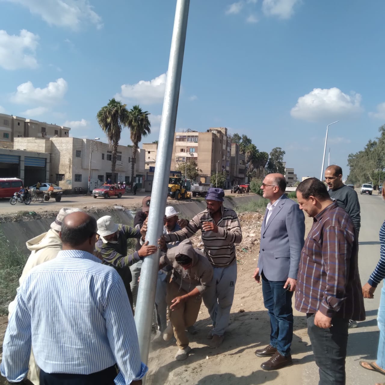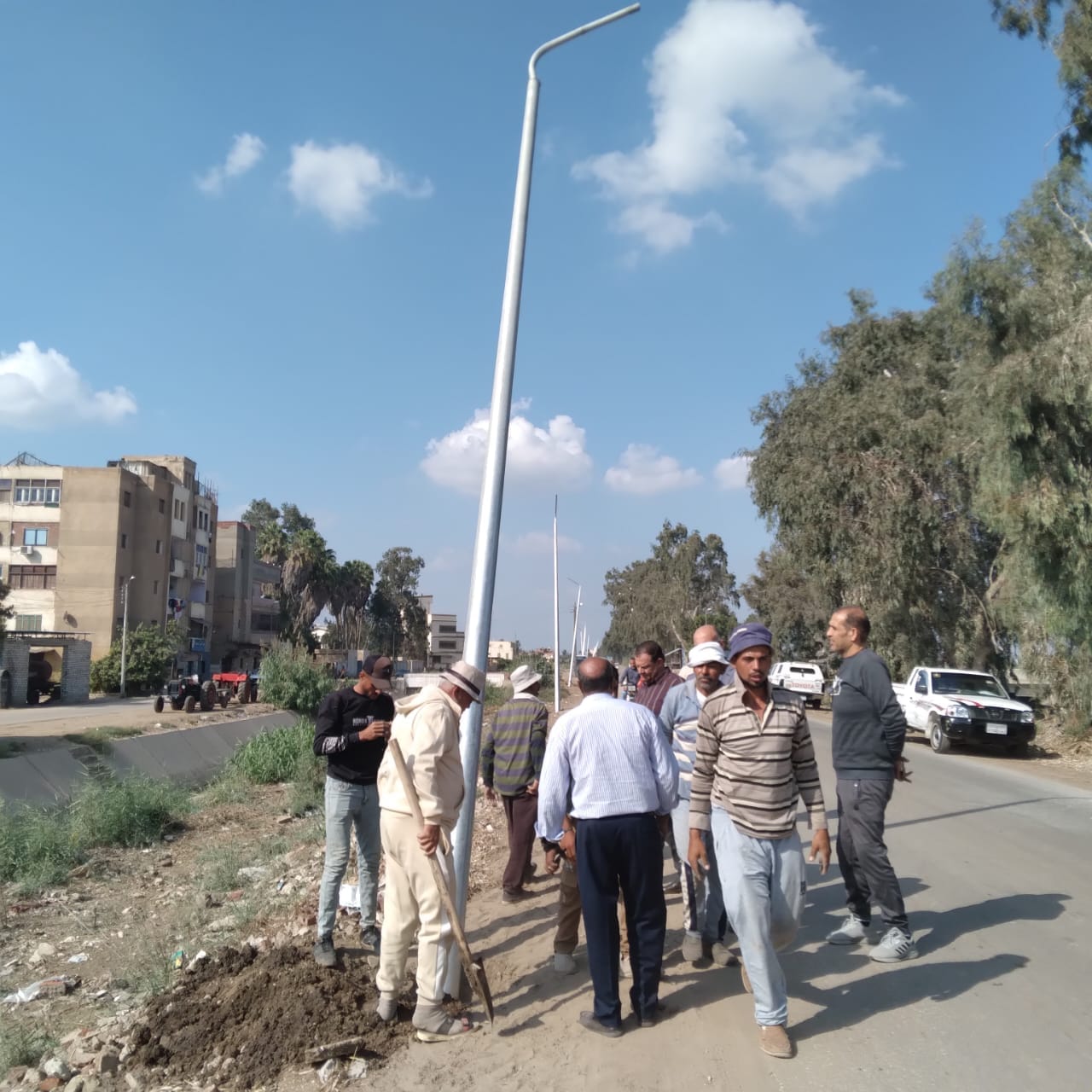 كفر الشيخ.. تركيب 99 عمود إنارة بطريق إبشان - أبو بدوي ببيلا