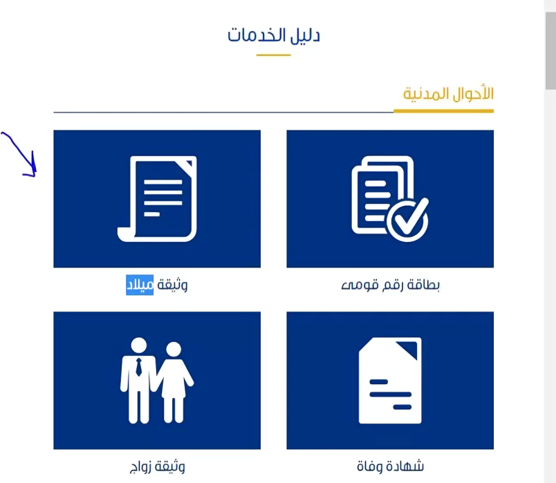 - - الدخول إلى صفحة الخدمات الوثائق الشخصية.