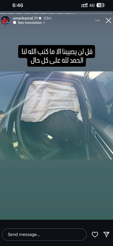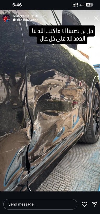 نشر عمر كمال لاعب الفريق الاول لكرة القدم بالناى الأهلي تعرض عمر كمال عبد الواحد، لاعب الفريق الأول لكرة القدم بالنادي الأهلي عدة صور لسيارته عقب الحادث الذى تعرض له، وأدى إلى أضرار بأحد جوانب سيارته.