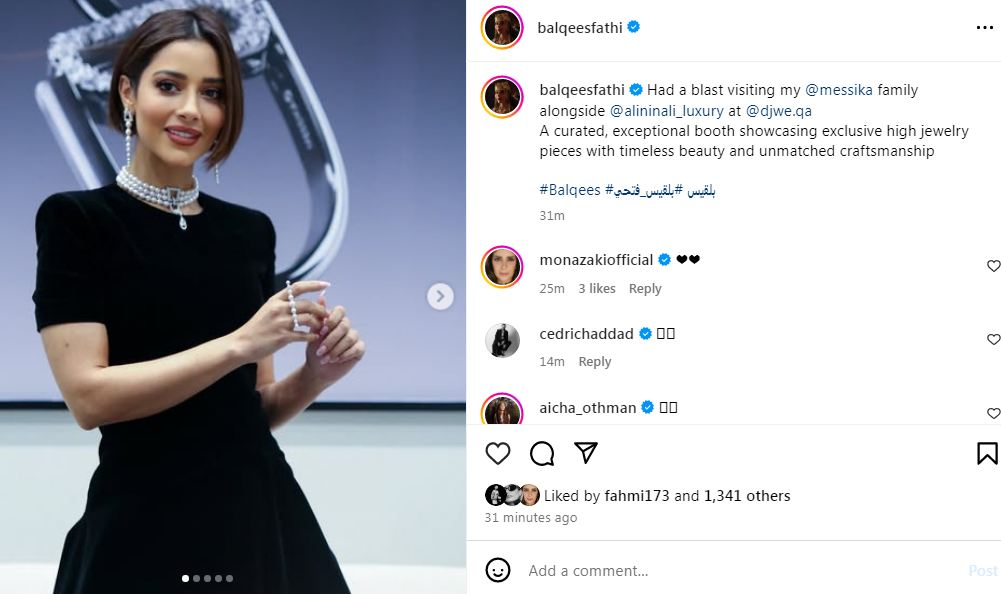 وظهرت بلقيس فتحي داخل معرض مجوهرات والالماس وشاركت متابعيها ببعض الصور والفيديوهات عبر حسابها الشخصي بموقع الإنستجرام.