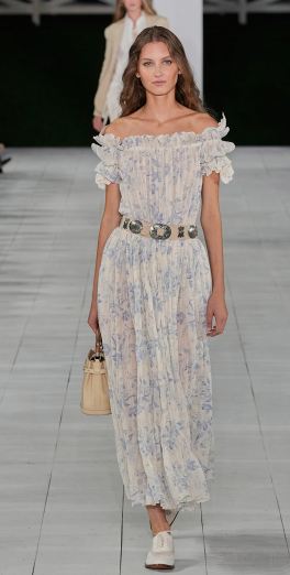 إذا كنتِ تخططين لقضاء عطلة العيد على أحد الشواطئ، ففكري في تبني موضة الفساتين منسدلة الأكمام Off Shoulder Dresses، واختاري واحداً من الفساتين الناعمة التي امتلأت بها مجموعات الأزياء الجاهزة لهذا الموسم، خاصة تلك المزينة بطبعات رقيقة، كما في الفستان الطويل المزيّن بكشاكش على الصدر والكتفين من مجموعة رالف لورين Ralph Lauren.