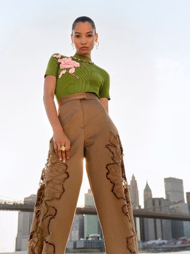 لتواكبي آخر صيحات ربيع وصيف 2025، أنتِ لا تحتاجين سوى كنزة قصيرة بياقة مرتفعة مطرزة بالورود البارزة وبنطلون مرتفع الخصر، كما في إطلالة عارضة أوسكار دي لا رنتا Oscar De La Renta التي دمجت اثنين من أكثر الألوان الرائجة هذا الموسم، نتحدث عن الأخضر البيستاش والبني الفاتح، أكملي هذه الطلة الكاجوال الناعمة بأقراط Hoops متوسطة الحجم مصممة من الذهب الأصفر، واختاري الصندل والحقيبة من لون البنطلون لتكتمل أناقتك بالطريقة المثالية.