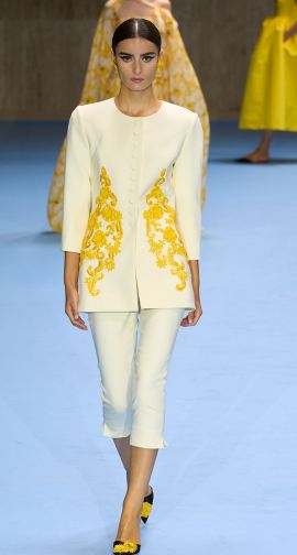 إذا كنتِ تفتشين عن إطلالة مرحة خلال نهار عيد الأضحى ولكن من دون التضحية بأناقتك، فنحن ندعوك إلى تبني موضة البدلات النسائية المصممة ببنطلون برمودا قصير، كما في التصميم الذي جلبناه لكِ من مجموعة كارولينا هيريرا Carolina Herrera، فإلى جانب لونه الأصفر الزبدي الرائج ازدان الجاكيت الطويل بتطريزات الزهور النافرة لتطبعه بلمسة ربيعية تناسب الأجواء الاحتفالية، جربي تنسيقه مع حذاء مدبب أسود، واحملي حقيبة سوداء صغيرة مزودة بسلسال ذهبي، وارتدي أقراطًا صغيرة من الذهب الأصفر المرصع بالألماس واللؤلؤ.