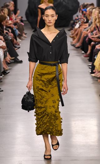 قد تستغربين في البداية فكرة إرتداء تنورة مطرزة خلال النهار، ولكن عندما تشاهدين التنانير الميدي التي كشفت عنها ماركة مايكل كورس Michael Kors ضمن مجموعة ربيع 2025 ستتحمسين لاعتمادها في عيد الأضحى، خاصة التنورة الخضراء الكاكي مستقيمة القصة التي نسقت مع قميص أسود سادة وحزام جلد وصندل وحقيبة دلو من اللون ذاته، ولإضفاء لمسة مرح على الطلة يمكنك استبدال القميص الأسود بآخر أبيض والإبقاء على باقي الأكسسوارات عدا الحقيبة يفضل أن تختاريها بلون ترابي أو بلون جريء مثل الأحمر أو الفوشيا الرائج.