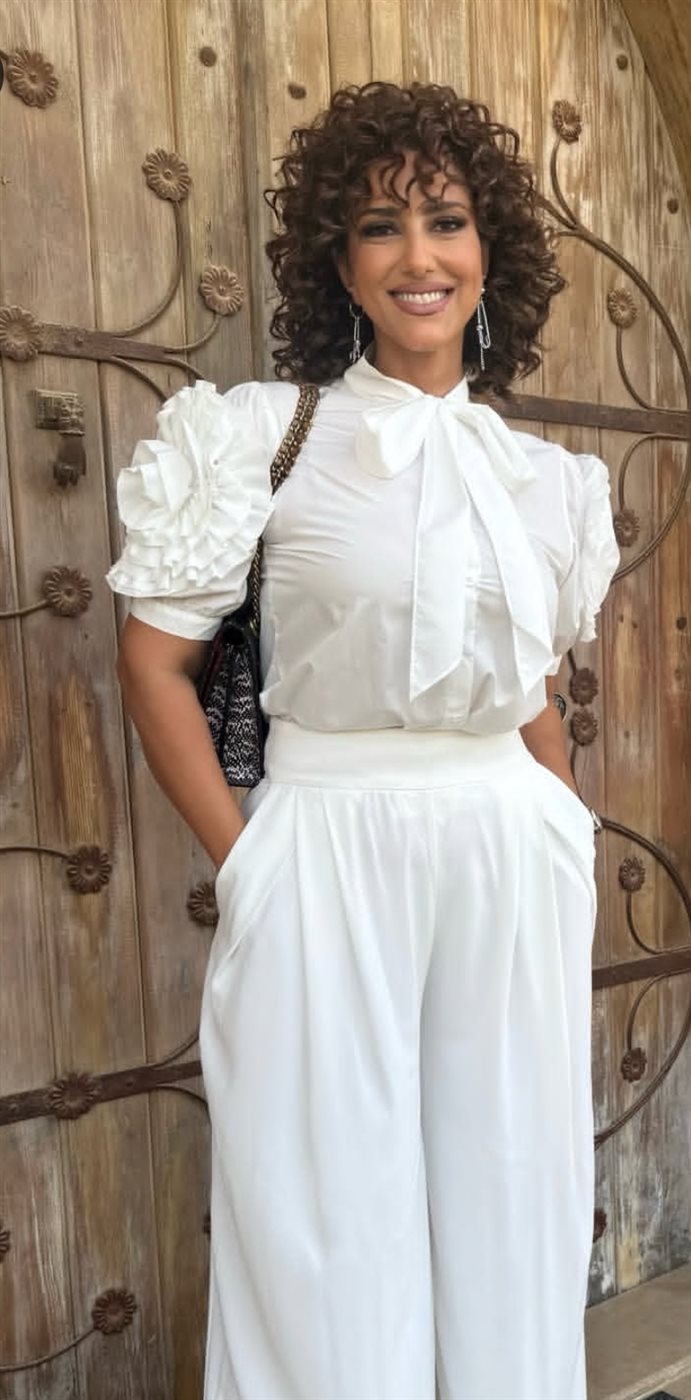 و خطفت حنان مطاوع الأنظار اثناء تجولها في شارع المعز لدين الله الفاطمي و خضوعها جلسه تصوير جديد، مرتديه قميص ابيض مميز التصميم مع بنطال أنيق بنفس اللون لتعكس قوامها الرشيق ووزنها المثالي، لتشبه زهرة الصفاء.
