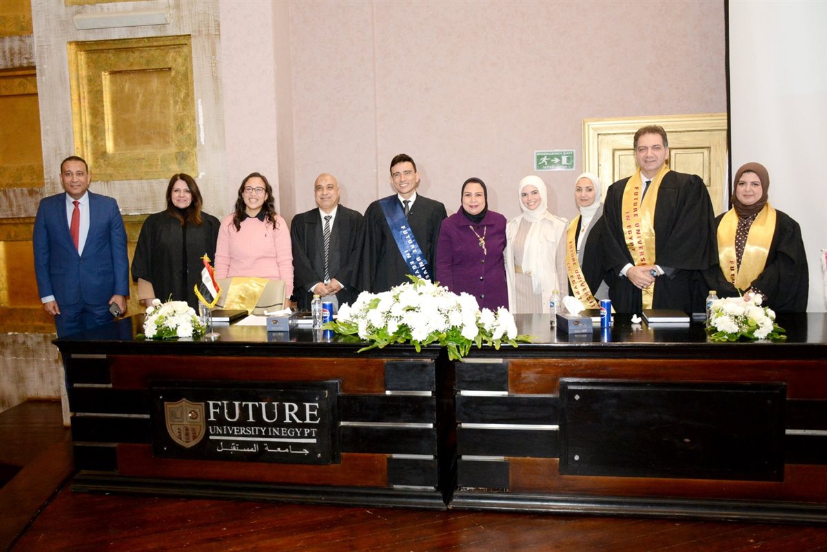 والأستاذ المساعد الدكتور عادل عبد الواحد، أستاذ مساعد بقسم علاج الجذور بكلية طب الفم والأسنان – جامعة المستقبل، إلى جانب أعضاء لجنة الإشراف.