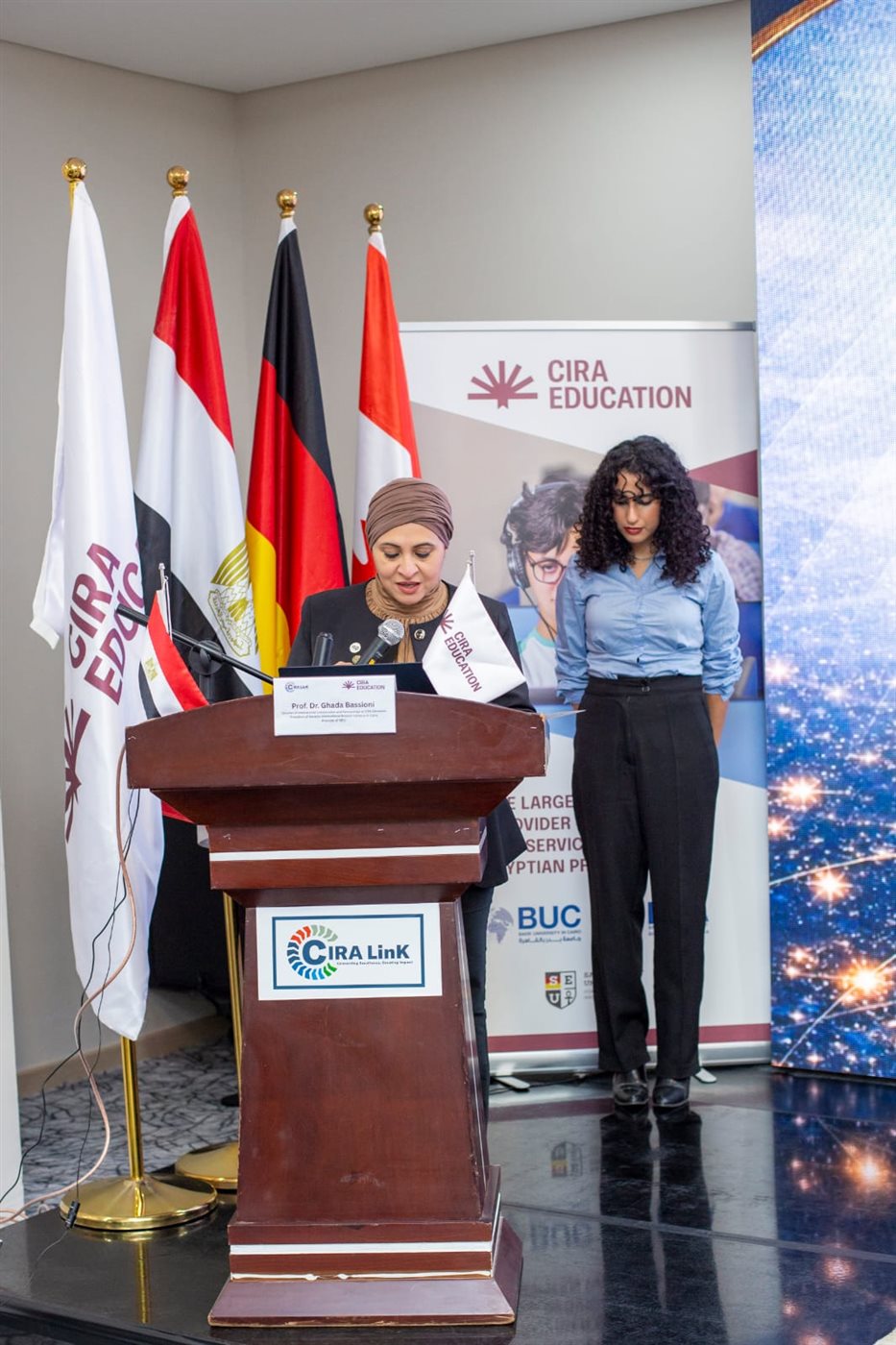 وتقود الدكتورة غادة بسيوني، الجانب العلمي و التنظيمى للمؤتمر مستندة إلى موقعها كرئيس لفرع جامعة سينيكا الدولية بالقاهرة، والرئيس الأكاديمي لجامعة ساكسوني مصر للعلوم التطبيقية والتكنولوجيا.