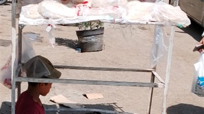 "أكل العيش مر" بائع الخبز الصغير يستظل بخبزة من حرارة الشمس| صور